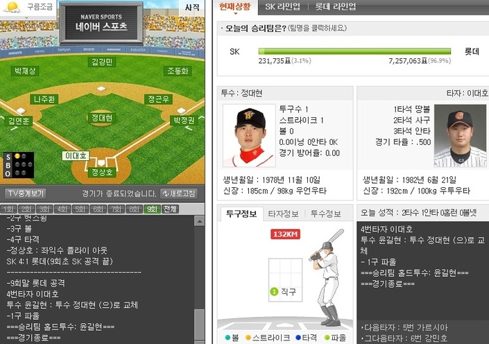 이번에는 직구를 던질 것인지 변화구를 던질 것인지 두고 치열한 두뇌 싸움을 하는 게임이 야구입니다.