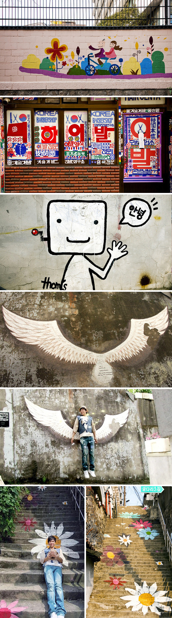 이화마을은 아무도 찾지 않는 소외된 지역에 예술 작품으로 활력을 불어 넣고, 도심의 화려함과