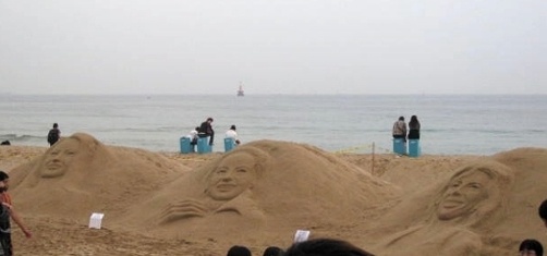 백사장에는 모래로 유명 배우들의 얼굴을 조각하여 전시되어 이던 샌드 아트 페이스도 나에겐 신선한 느낌을 주었다.