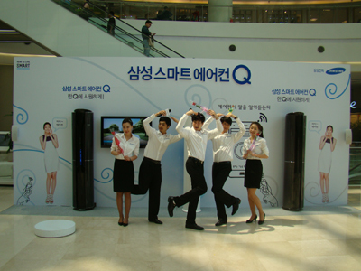 삼성스마트에어컨Q는 음성인식기능을 가진 국내 최초 스마트 에어컨이다. 우리에게는 스포츠 스타 김연아의 TV광고를 통해서도 많이 알려져 있는 제품으로, 당시 새로운 TVC ONAIR를 앞두고 지난 3월 tvN의 코미디빅리그 시즌2 필러방송을 위한 아3인 촬영과 4월 타임스퀘어에서 주말 이틀간 방문고객 대상에 걸친 두 번의 제품 홍보는 ‘음성인식’이라는 최신기술을 선보이기에 충분했다. 신제품의 제품구동 시점에서 시청률이 높은 방송매체를 통한 시청자와 쇼핑몰 이용고객 대상의 두 가지 홍보방안은 ATL과 BTL을 동시에 아우르는 IMC의 좋은 예가 될 것이다.