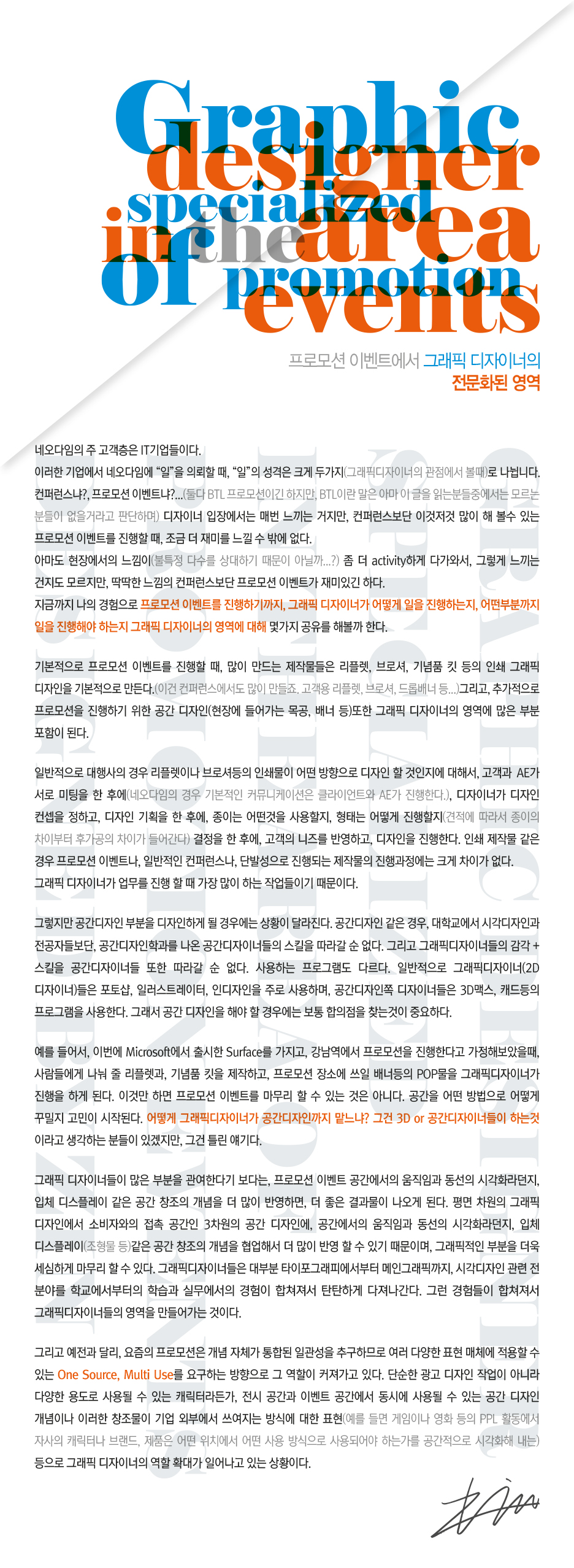 프로모션이벤트에서 그래픽디자이너의 전문화된 영역