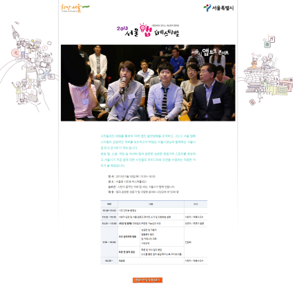 - 서울시 앱페스티벌 : “시민이 꿈꾸는 미래 앱세상, 서울시가 함께 만듭니다.” 관공서, 시민 그리고 기업이 만들어가는 새로운 세상