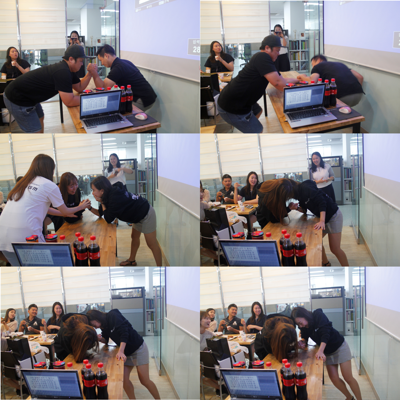 이외에도 조 별 몰아주기 사진 찍어 보내기, 문자 빨리 보내기, 타자 빨리 치기 등 기상천외한 대결이 진행되었답니다 ㅎㅎ