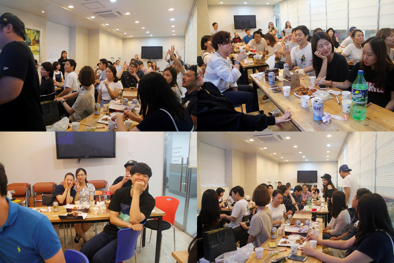 꺾이지 않는 더위로 지쳐있던 직원들에게 (이리저리 뛰어 다니느라 땀은 더 흘렸을지 몰라도^^;) 잠깐의 웃음을 통해 기운을 회복할 수 있었던 시원한 시간이 아니었나 싶습니다:)