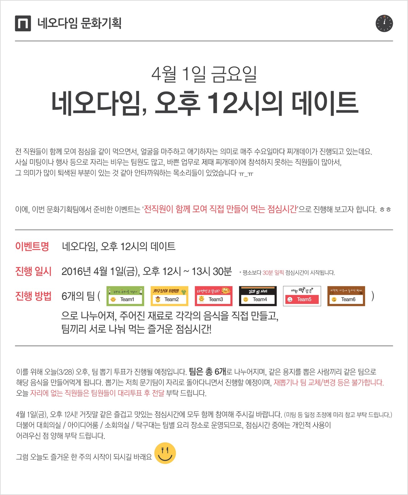 무려 지난 4월 1일 금요일 진행되었던 '네오다임 오후 12시의 데이트'!!